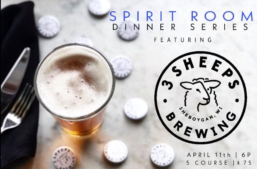 Join Spirit Room & 3 Sheeps Brewing for a collaboration dinner featuring the many styles of Sheboygan’s own local brewed beer with the uniqueness of Superior’s own Spirit Room one-time plates.